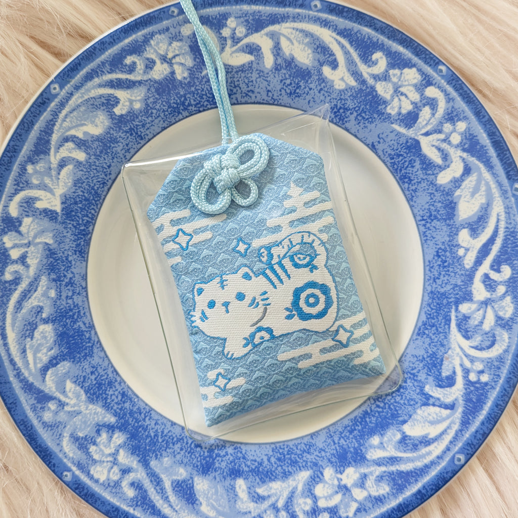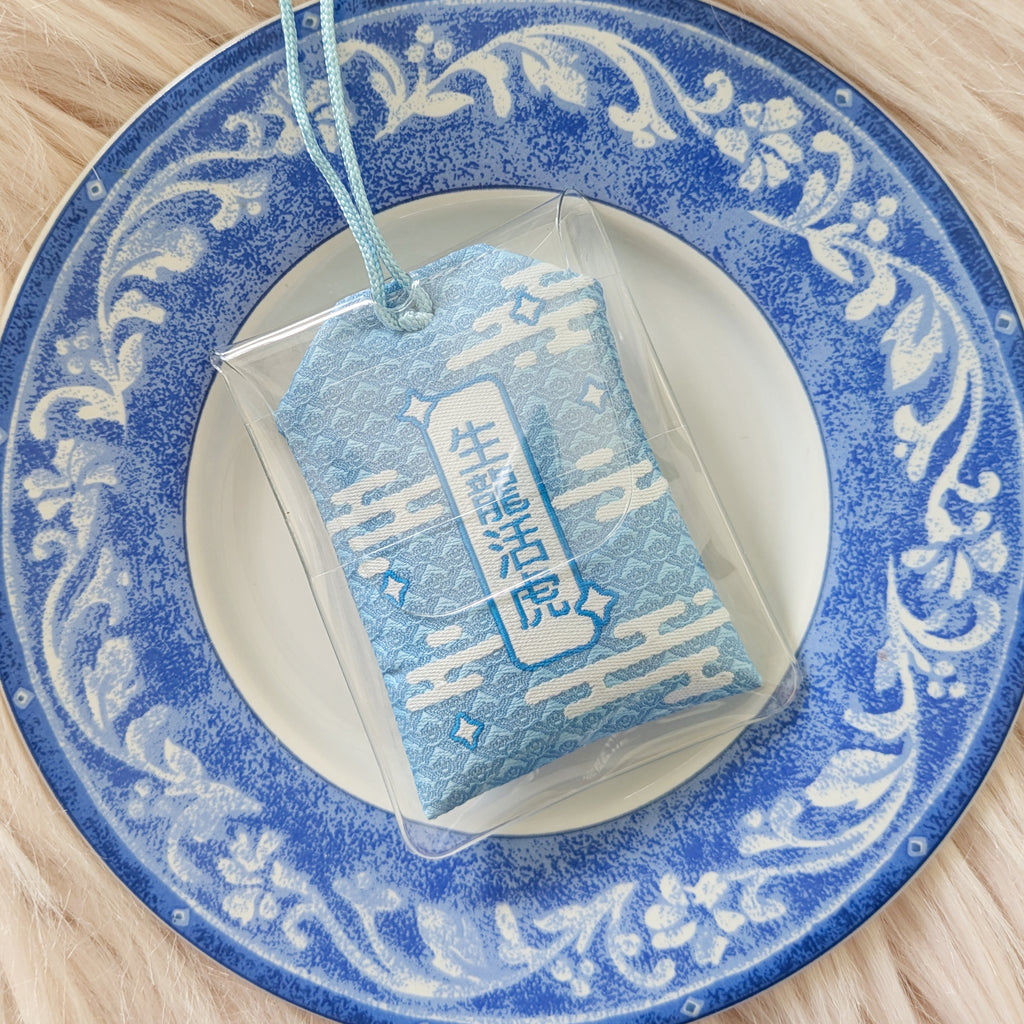 Omamori are small Japanese charms or amulets traditionally sold at temples and shrines. Each charm is said to provide specific forms of luck or protection