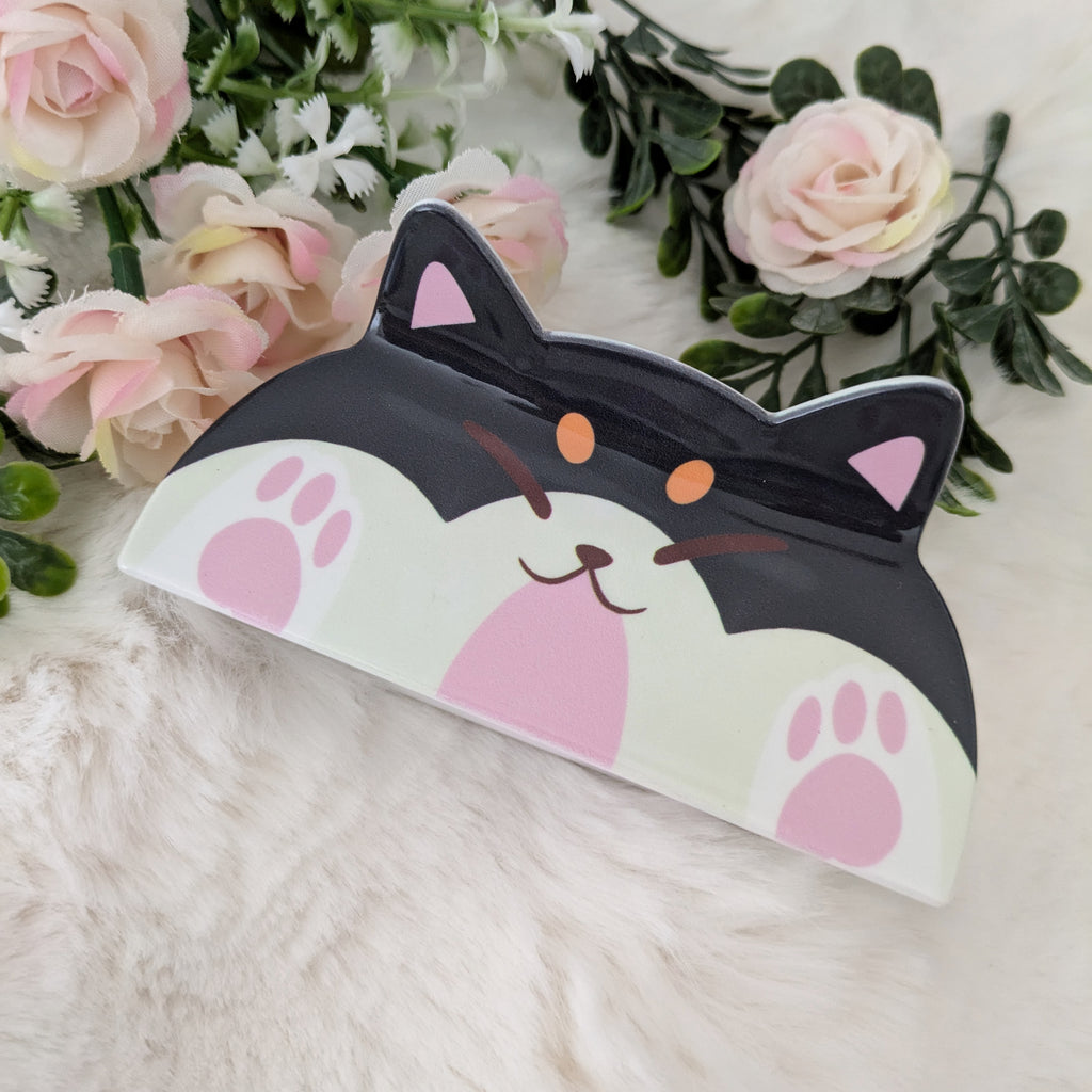 Keep your hair in check with a little help from this chonky Black & Tan Shiba Inu! Featuring a smug pup face, squishy pink paws, and sturdy acrylic construction, this hair claw is perfect for holding up your locks in style. Whether you're going for a casual updo or just need a cute clip for quick errands, this shibe’s got you covered—no barking, just vibes.