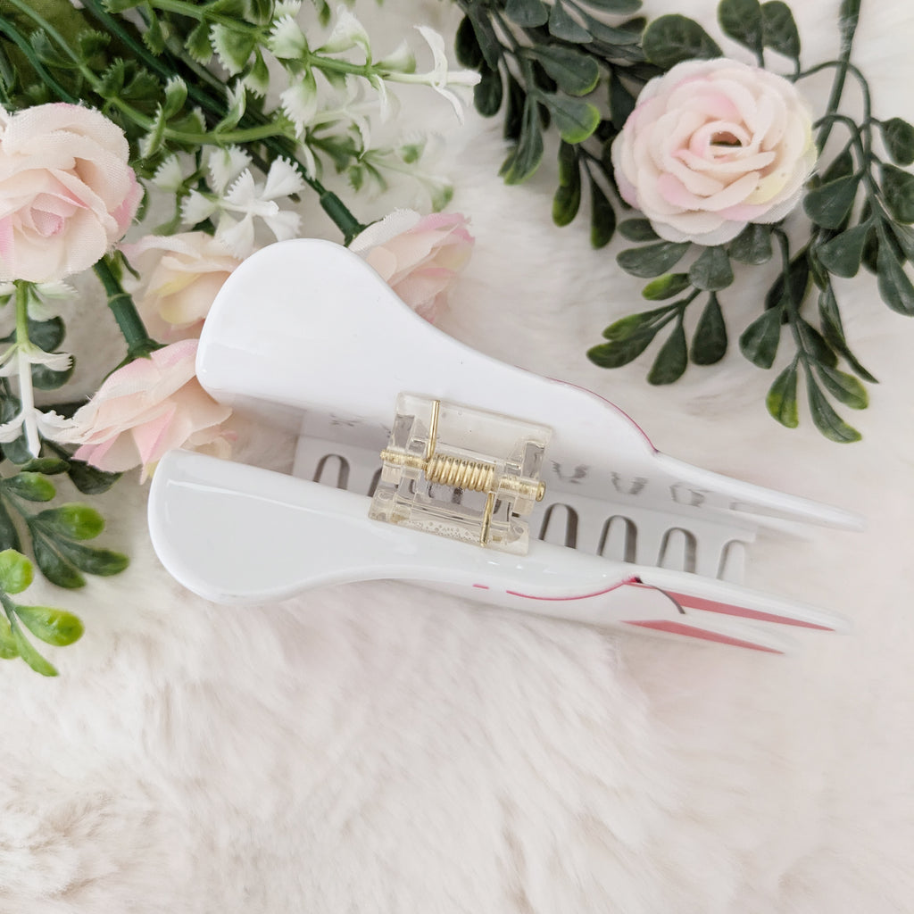 Channel the mystery and charm of the fox spirit with this Kitsune Mask Hair Claw. Inspired by traditional Japanese folklore, this claw clip features a sleek white finish with vibrant red and black markings reminiscent of a festival mask. Elegant yet bold, it's the perfect blend of tradition and modern style—whether you're headed to a matsuri or just trying to keep your hair up with flair.
