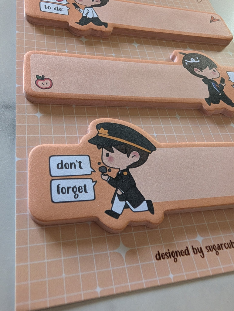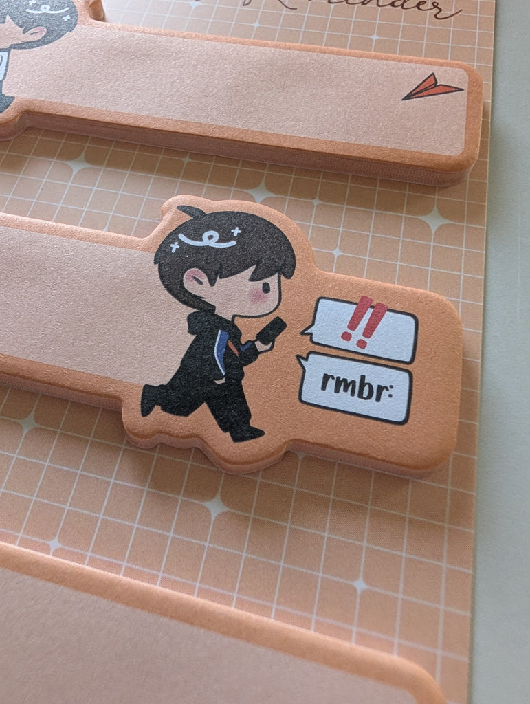 Keep your thoughts cute, organized, and impossible to forget with this adorable Caleb-themed removable sticky note pad! Featuring charming chibi designs and soft orange tones, it’s perfect for jotting down to-dos, quick reminders, or little notes throughout your day.