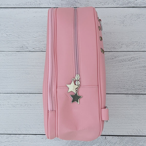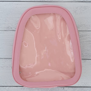 An ITA bag is a play on the Japanese word, "itai," translating to ouch! The backpack is designed for you to place your pins behind a clear window so you don't have to accidentally prick yourself while trying to wear it on your shirt or worry about losing it!