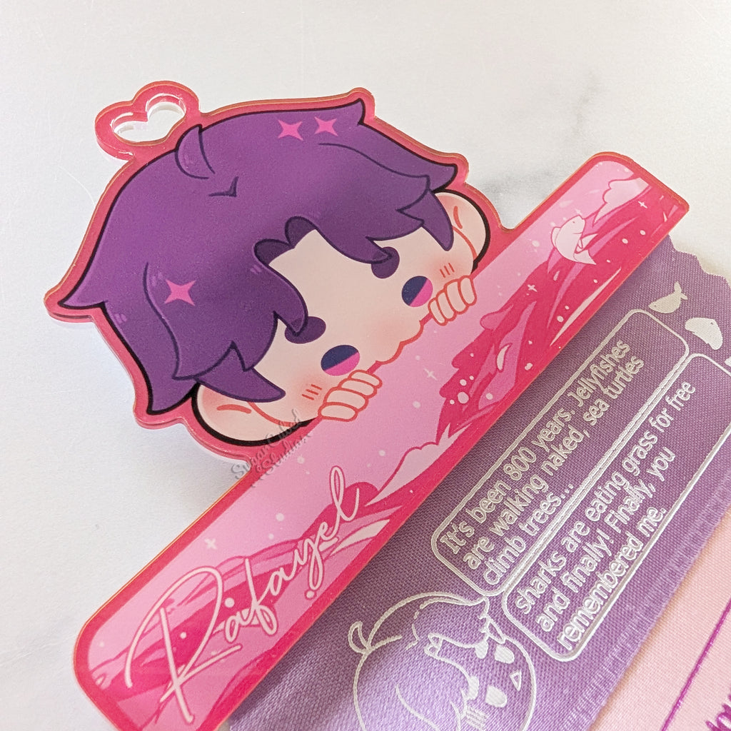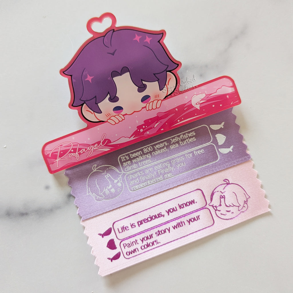 Keep your convention ribbons organized in style with this Rafayel Acrylic Ribbon Holder! Designed as a cute and practical alternative to attaching ribbons directly to your badge, this holder lets you collect, stack, and display your ribbons all in one place—no badge damage required.